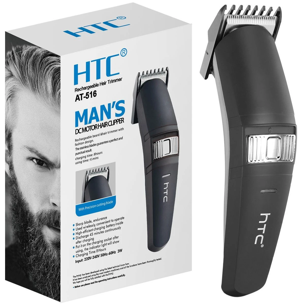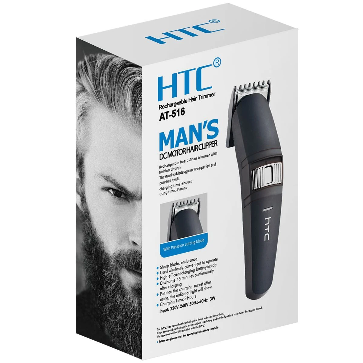 Машинка для стрижки волос HTC АТ-516. Цвет черный, время работы 45 мин, время заряда 8ч., 1 насадка , масло, щеточка, адаптер, индикатор заряда.