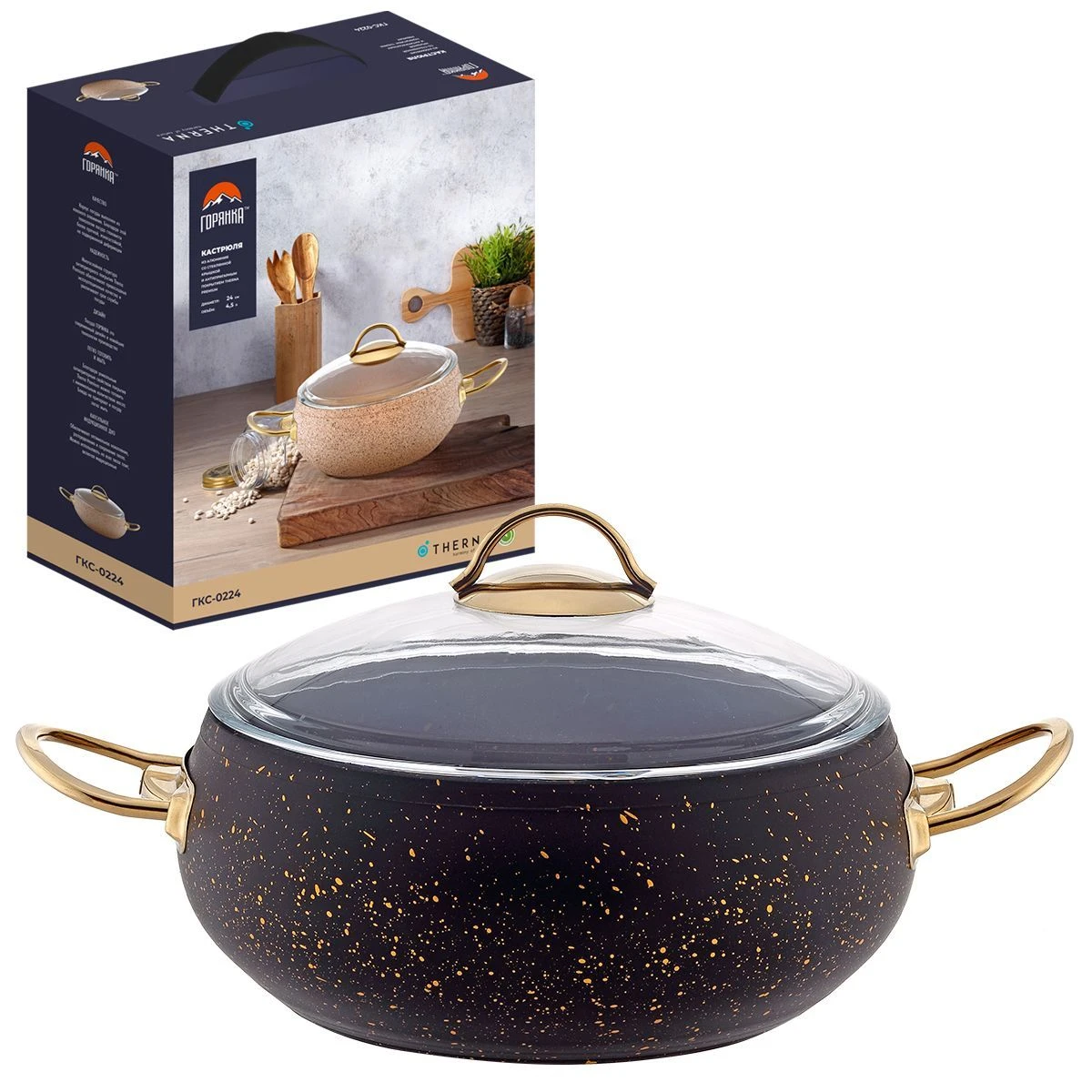 Цвет: Черный ; Диаметр: 24; Высота: 10; Объем: 4,5; Производство: Турция. Материал: Кованый алюминий.