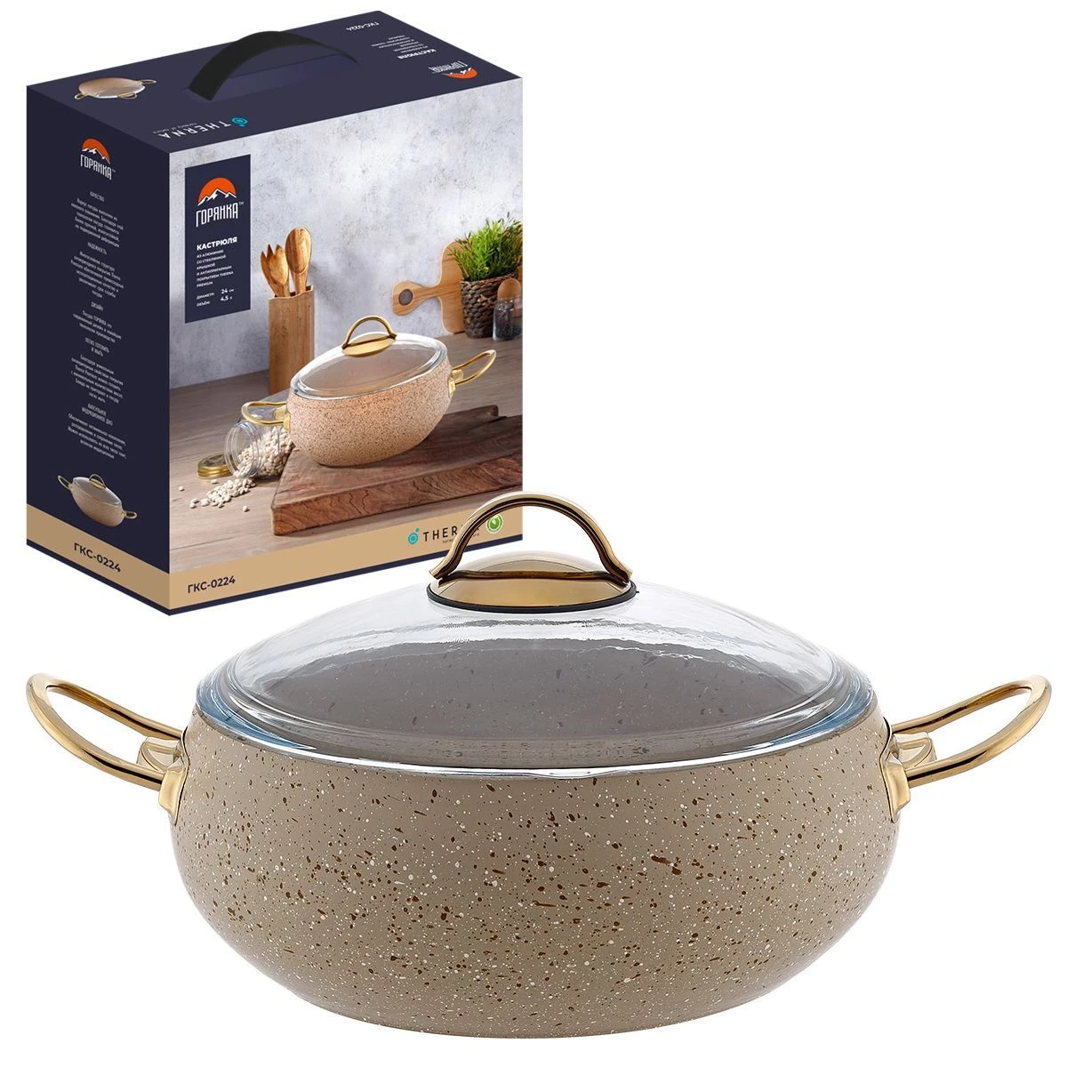 Цвет: Темный капучино ; Диаметр: 24; Высота: 10; Объем: 4,5; Производство: Турция. Материал: Кованый алюминий.