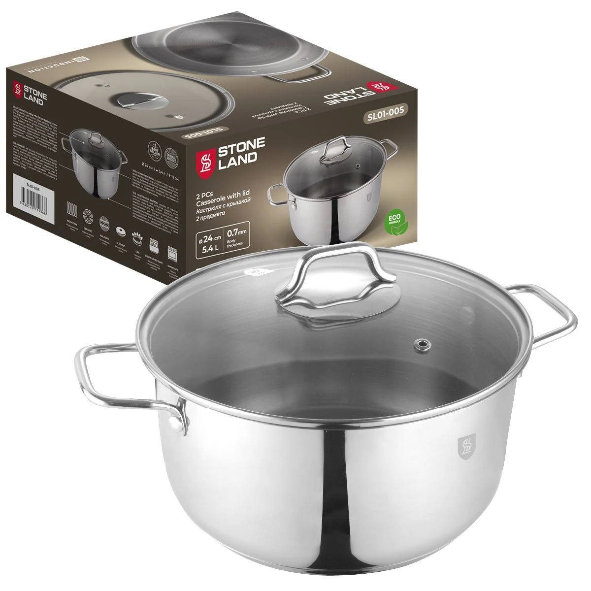 Кастрюля из нержавеющей стали с крышкой STONE LAND SL01-005,