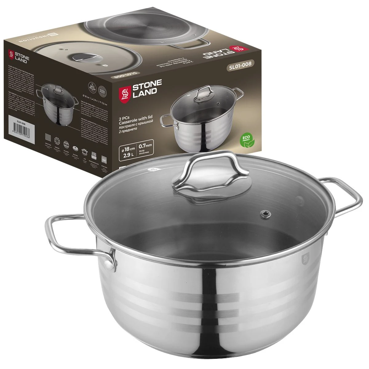 Диаметр: 18 см.; Объем: 2,9 л.; Высота: 11,5 см.;