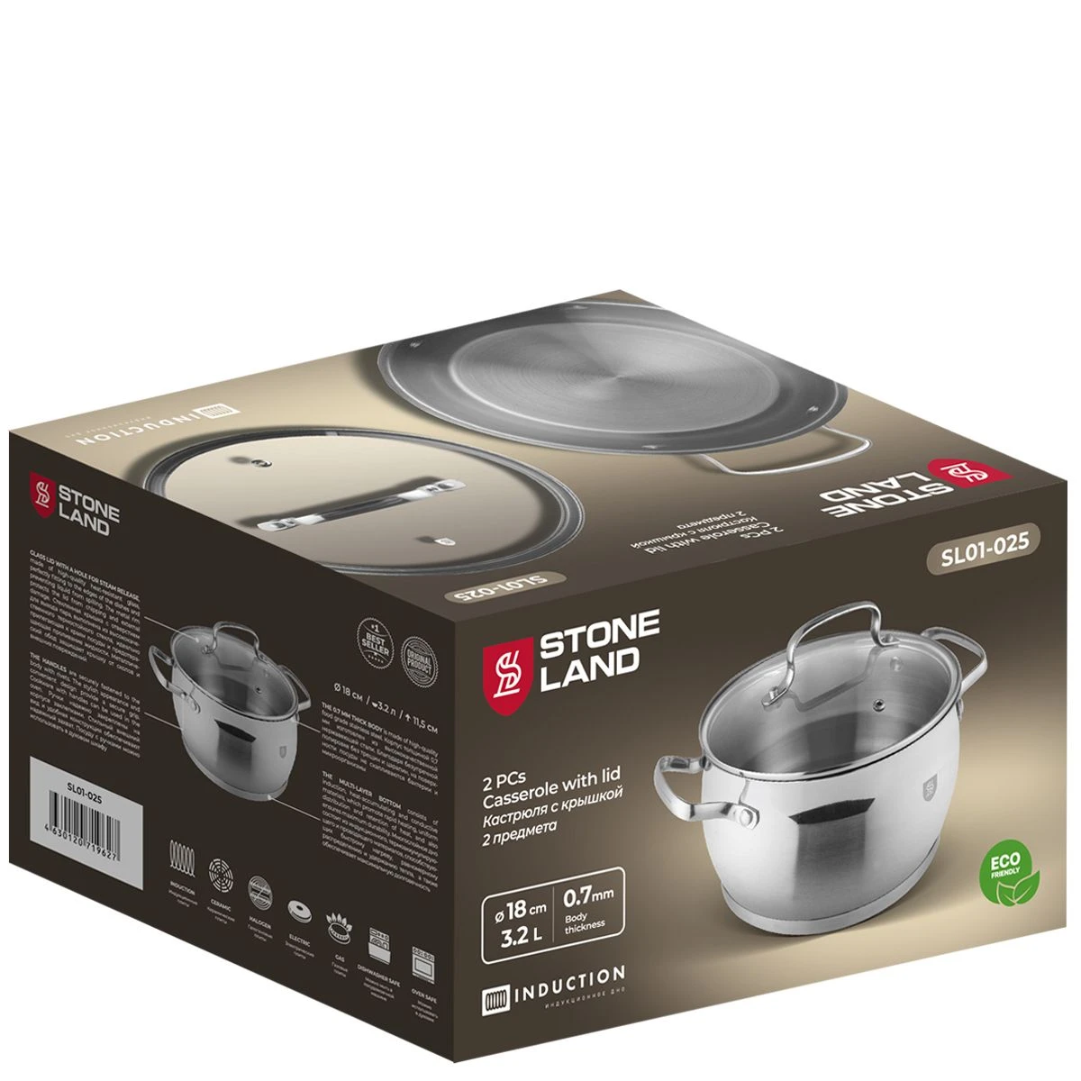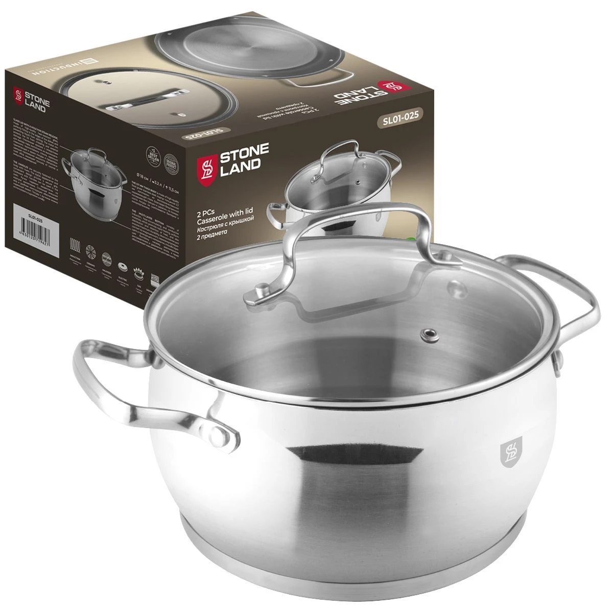 Кастрюля из нержавеющей стали с крышкой STONE LAND
