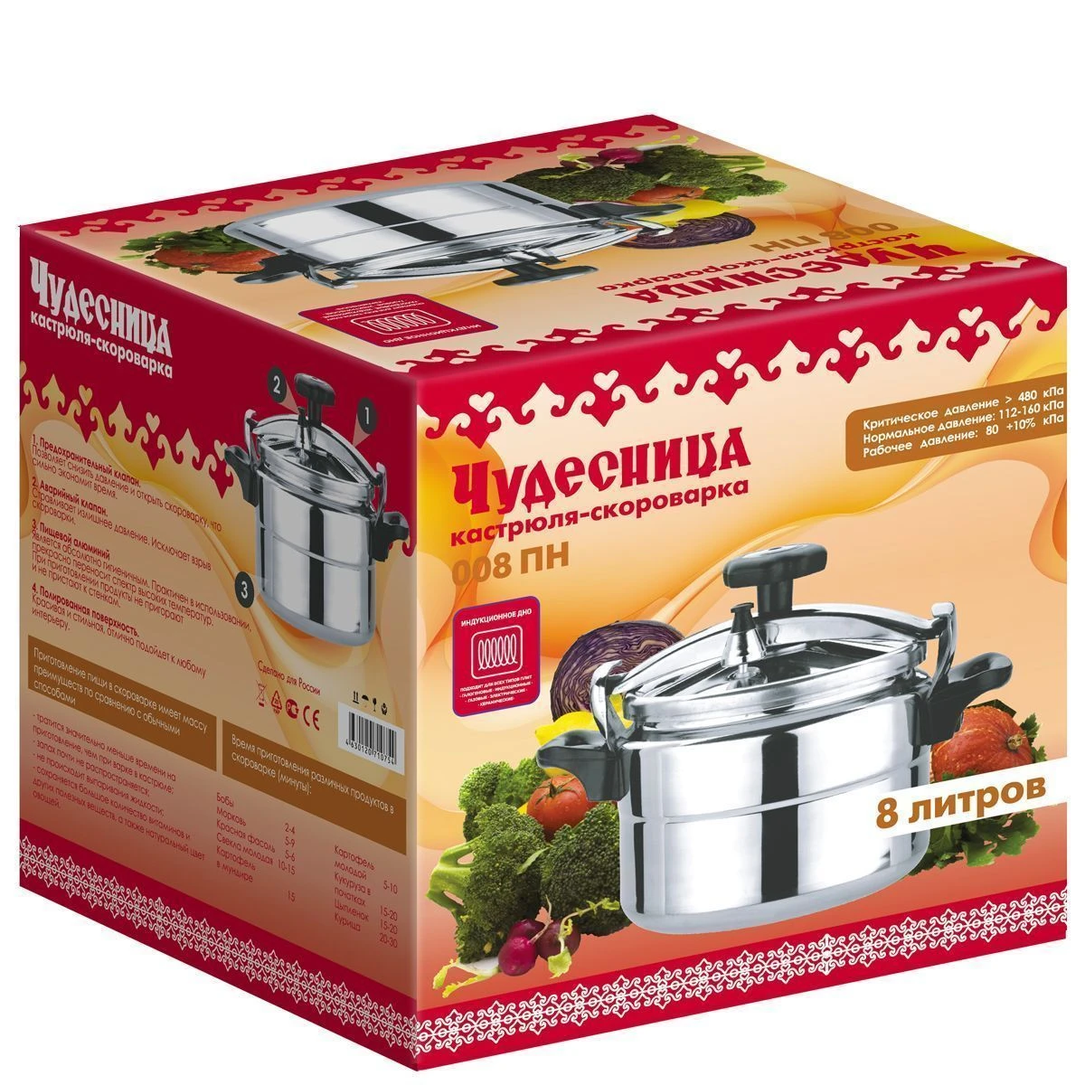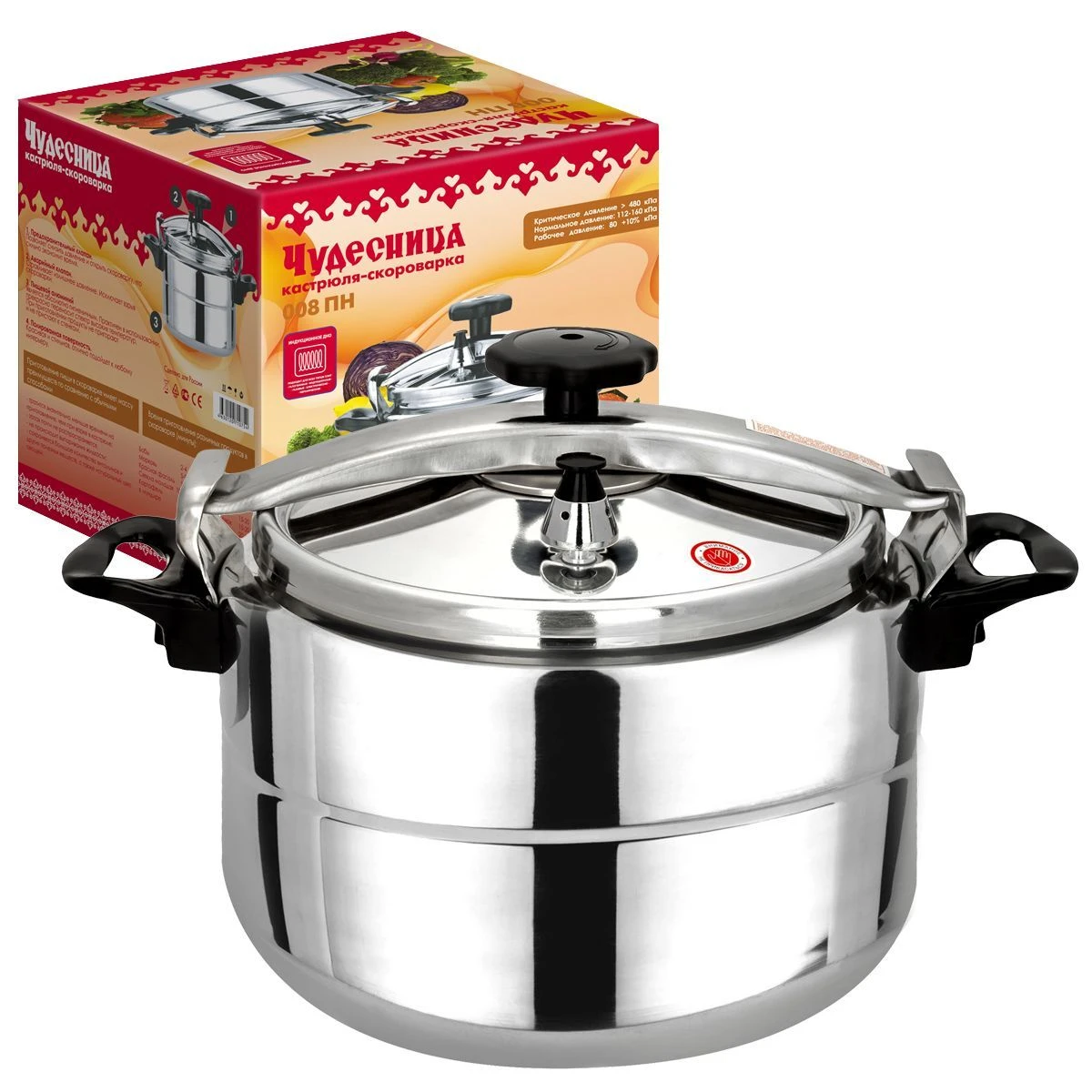 Скороварка Чудесница 008П. Две ручки, объем 8л., предохранительный клапан, материал - пищевой алюминий., для всех видов плит