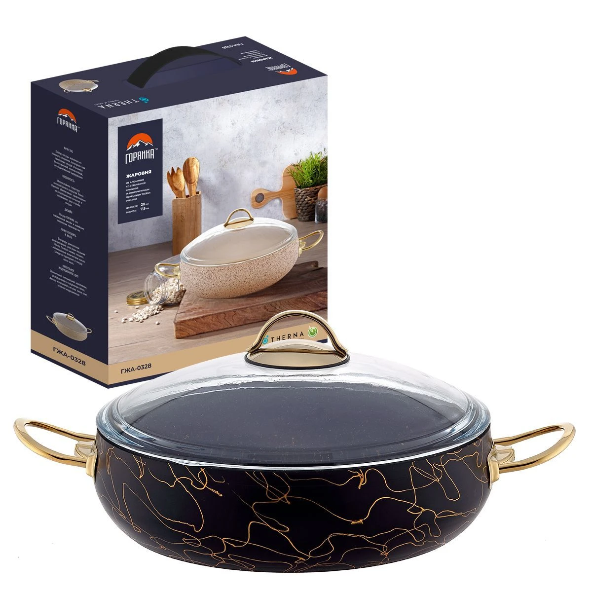 Цвет: Черный спайдер; Диаметр: 28; Высота: 7,5 ; Объем: 3,5; Производство: Турция. Материал: Кованый алюминий. Толщина дна/стенок: 4мм; Пятислойное индукционное капсульное дно.