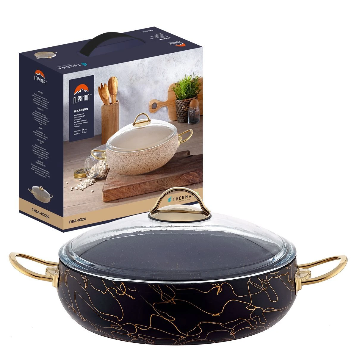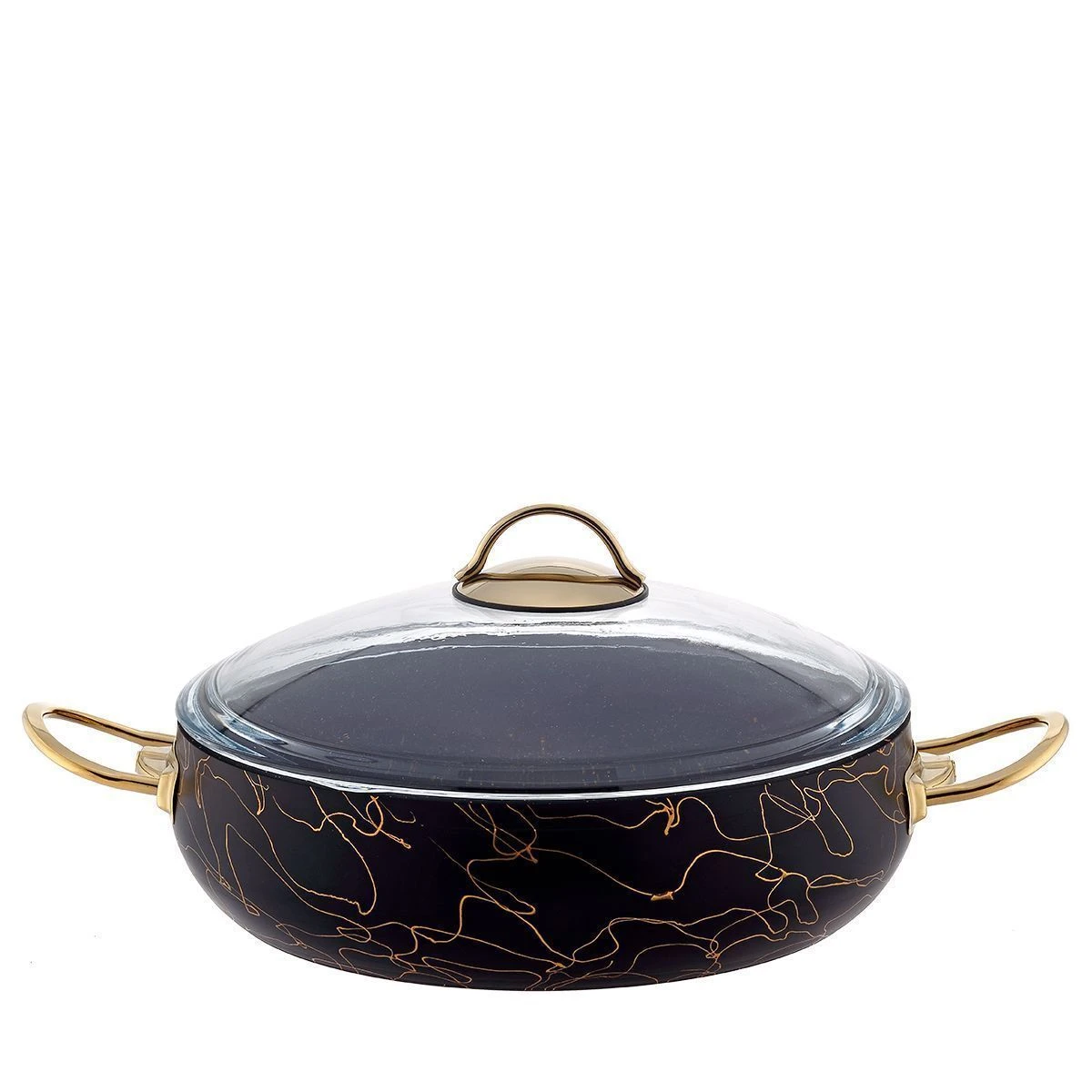 Цвет: Черный спайдер; Диаметр: 24; Высота: 6,5; Объем: 2,5; Производство: Турция. Материал: Кованый алюминий. Толщина дна/стенок: 4мм; Пятислойное индукционное капсульное дно.