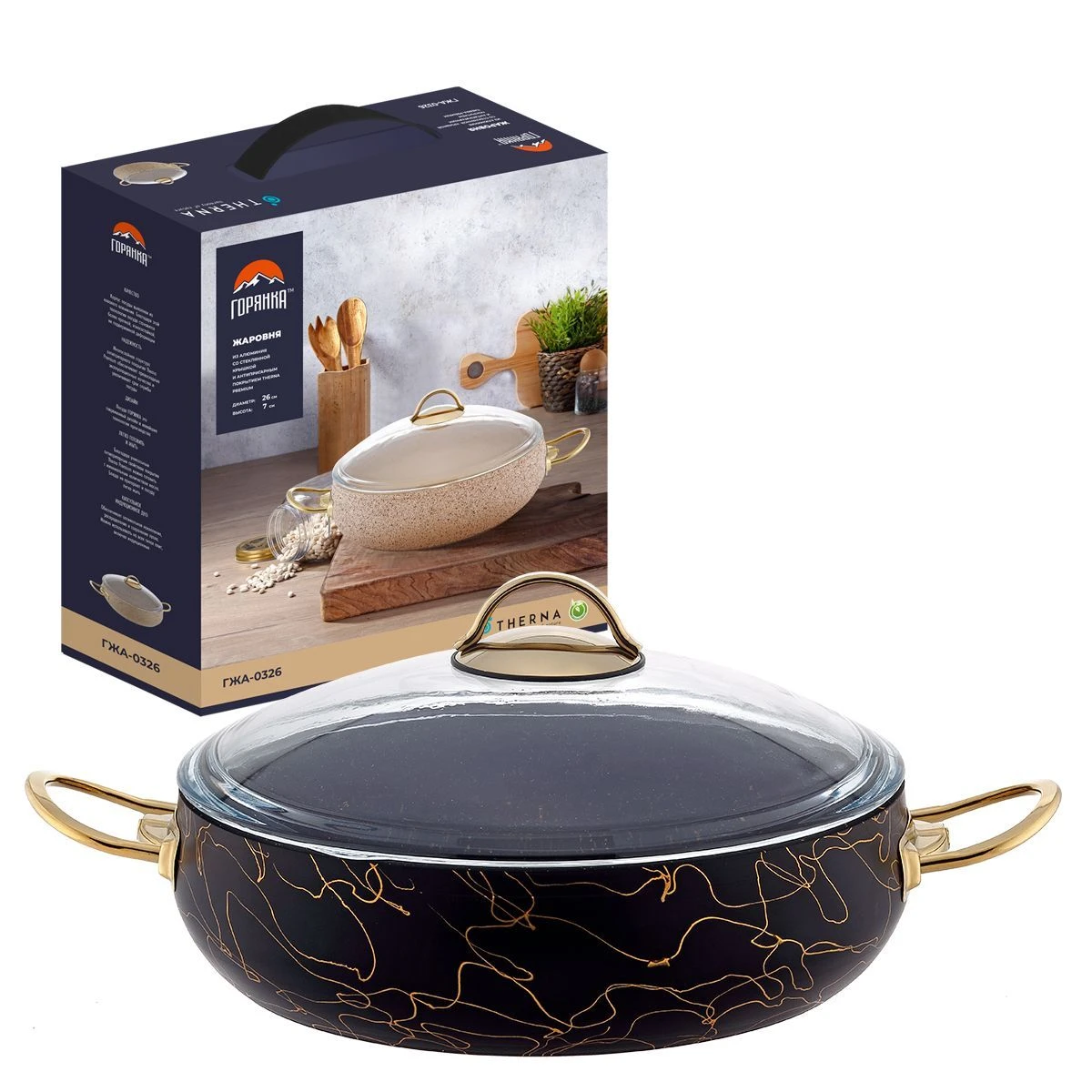 Цвет: Черный спайдер; Диаметр: 26; Высота: 7; Объем: 3; Производство: Турция. Материал: Кованый алюминий. Толщина дна/стенок: 4мм; Пятислойное индукционное капсульное дно.