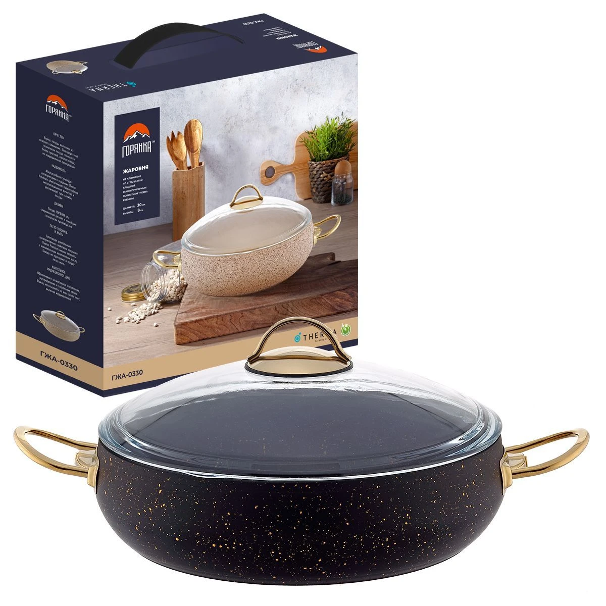 Цвет: Черный; Диаметр: 30; Высота: 8 ; Объем: 4; Производство: Турция. Материал: Кованый алюминий. Толщина дна/стенок: 4мм; Пятислойное индукционное капсульное дно.