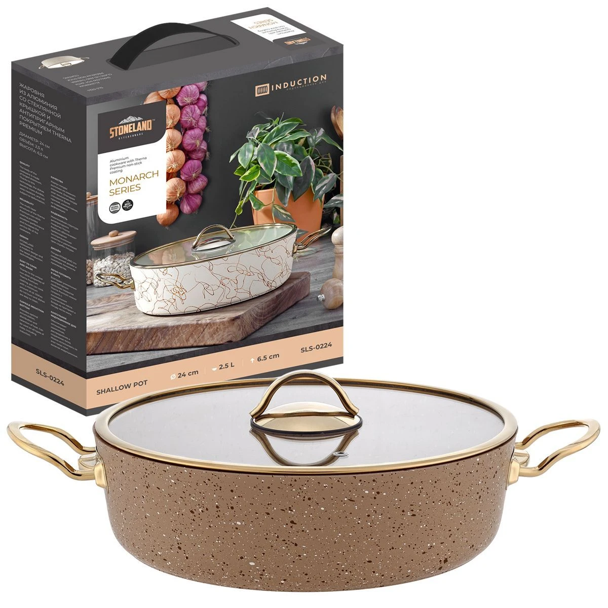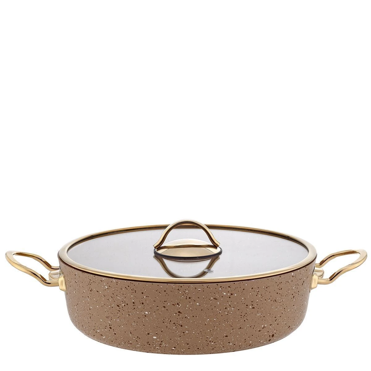 Цвет: Кремовый; Диаметр: 24; Высота: 6,5; Объем: 2,5; Производство: Турция. Материал: Кованый алюминий.