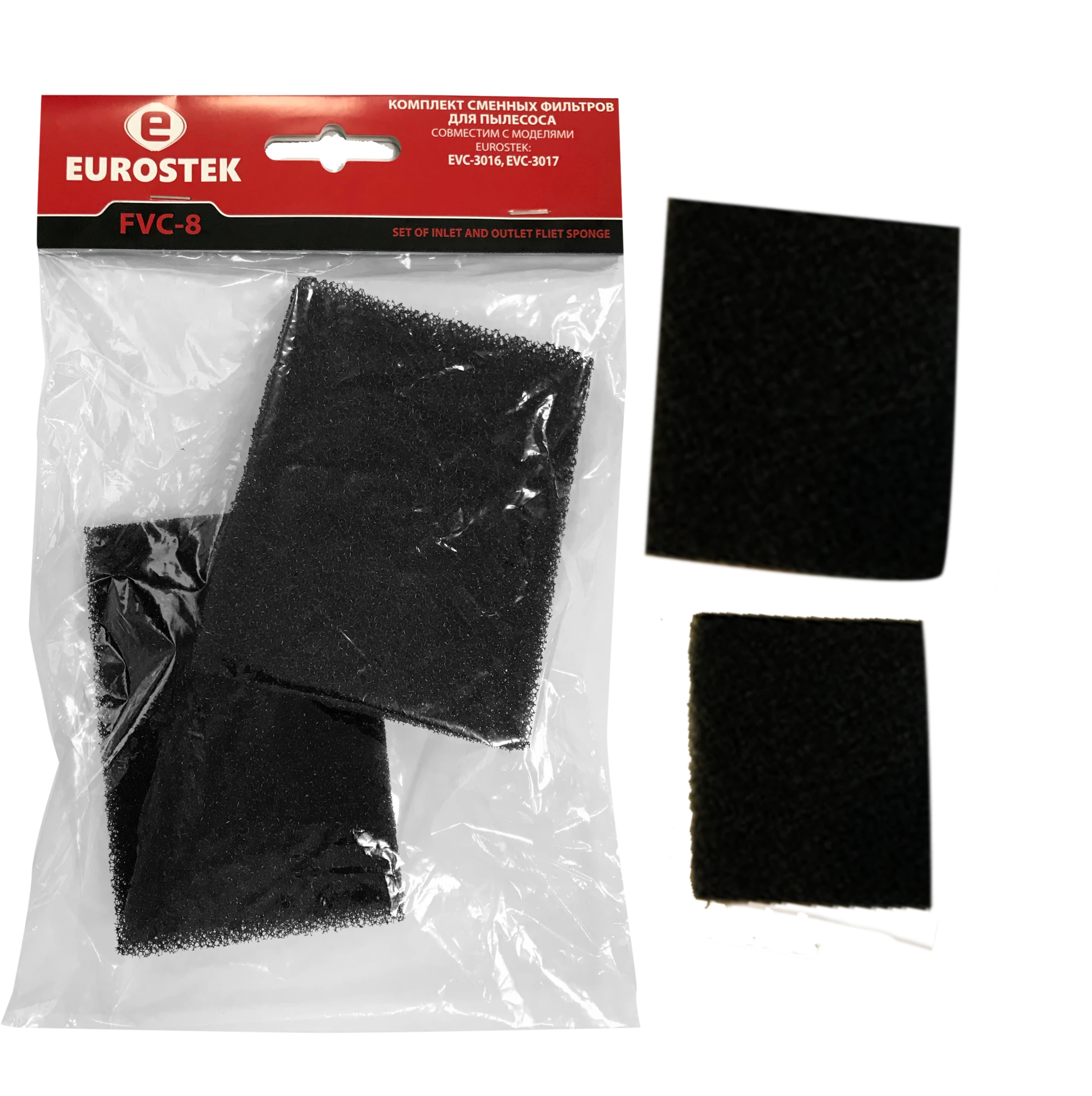 Комплект сменных фильтров для пылесоса Eurostek FVC-8. Совместим с моделями Eurostek: EVC-3016, EVC-3017. Внутренний губчатый фильтр. Внешний губчатый фильтр
