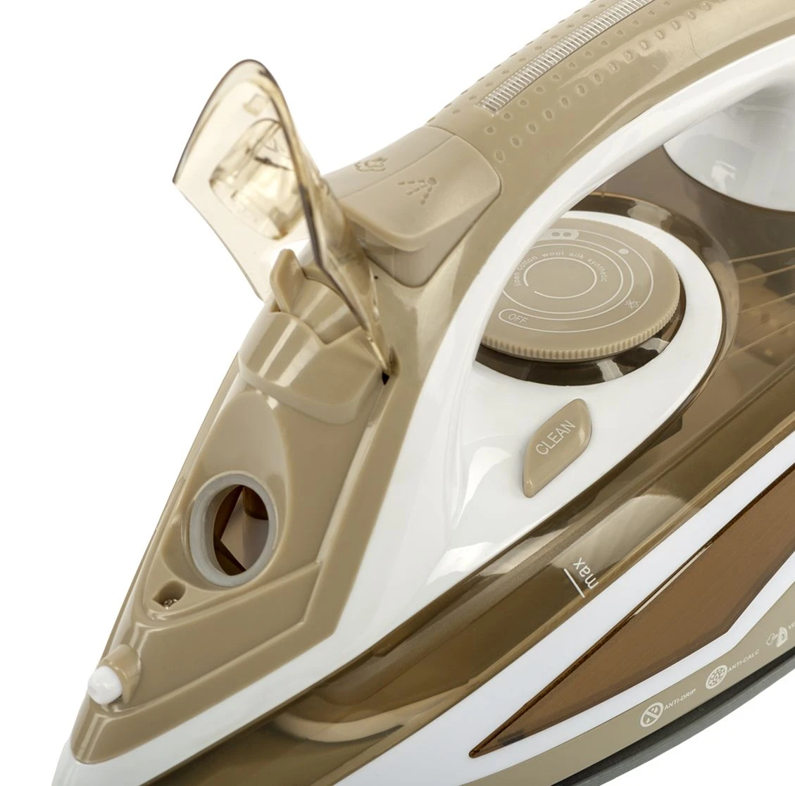 мощность 2600В, керамическая подошва, система самоочистки, встроенная защита от накипи, функция разбрызгивания, вертикальное отпаривание, мерный стаканчик
