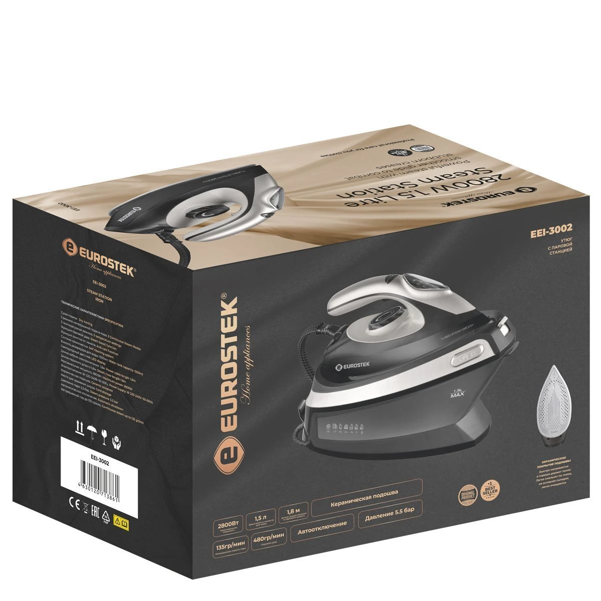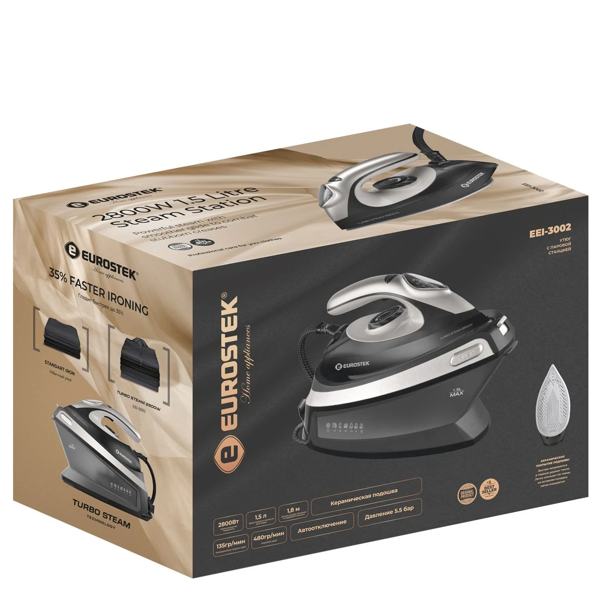 Мощность 2800Вт, Сух. глаж/пар/паровой удар, Механическое упр. температурой, керамическая подошва, Функция Anti-calc, Емкость резервуара для воды: 1500 мл, Длина кабеля: общая 1,8 м , Давление пара: 5,5 бар, Скорость подачи пара: 135 гр/мин, Система самоочистки, Автоматическое отключение, Наличие хранилища для шнура, Светодиодный дисплей, Сенсор пара
