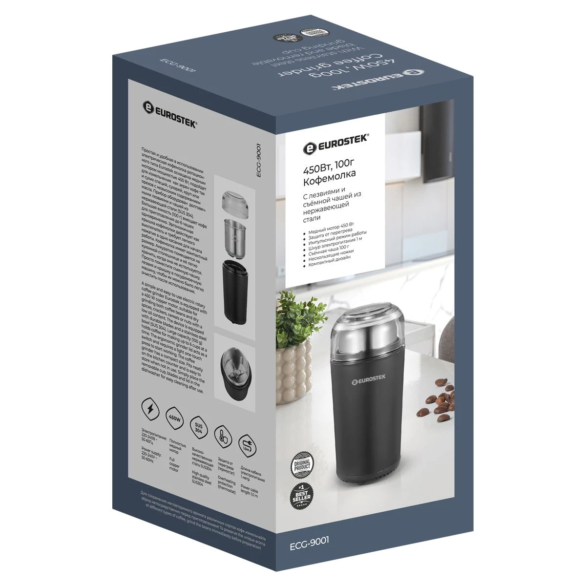 Кофемолка ECG-9001 проста и удобна в использовании. Подойдет для измельчения как зерен кофе так и сухих специй, сухарей, круп. мощность 450 Вт, объем 100 гр.