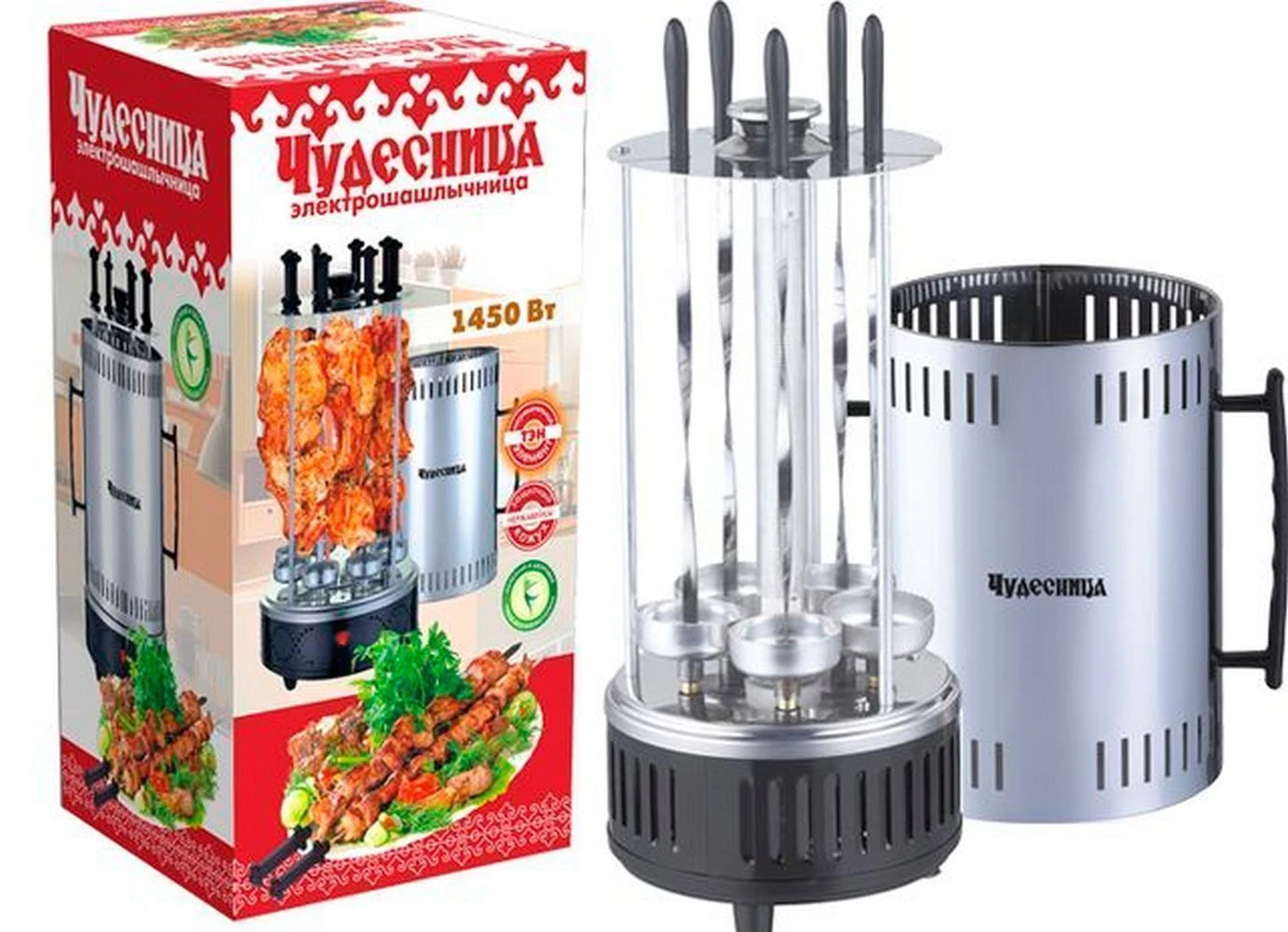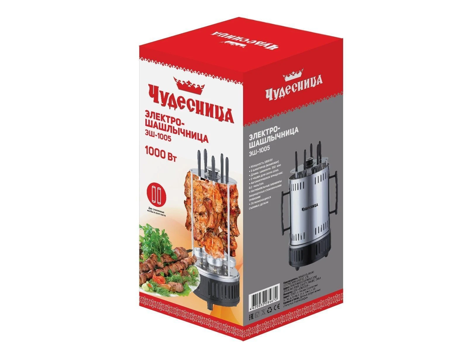 Электрошашлычница Чудесница ЭШ-1005. Мощность 1000Вт, керамический нагревательный элемент, 5 шампуров
